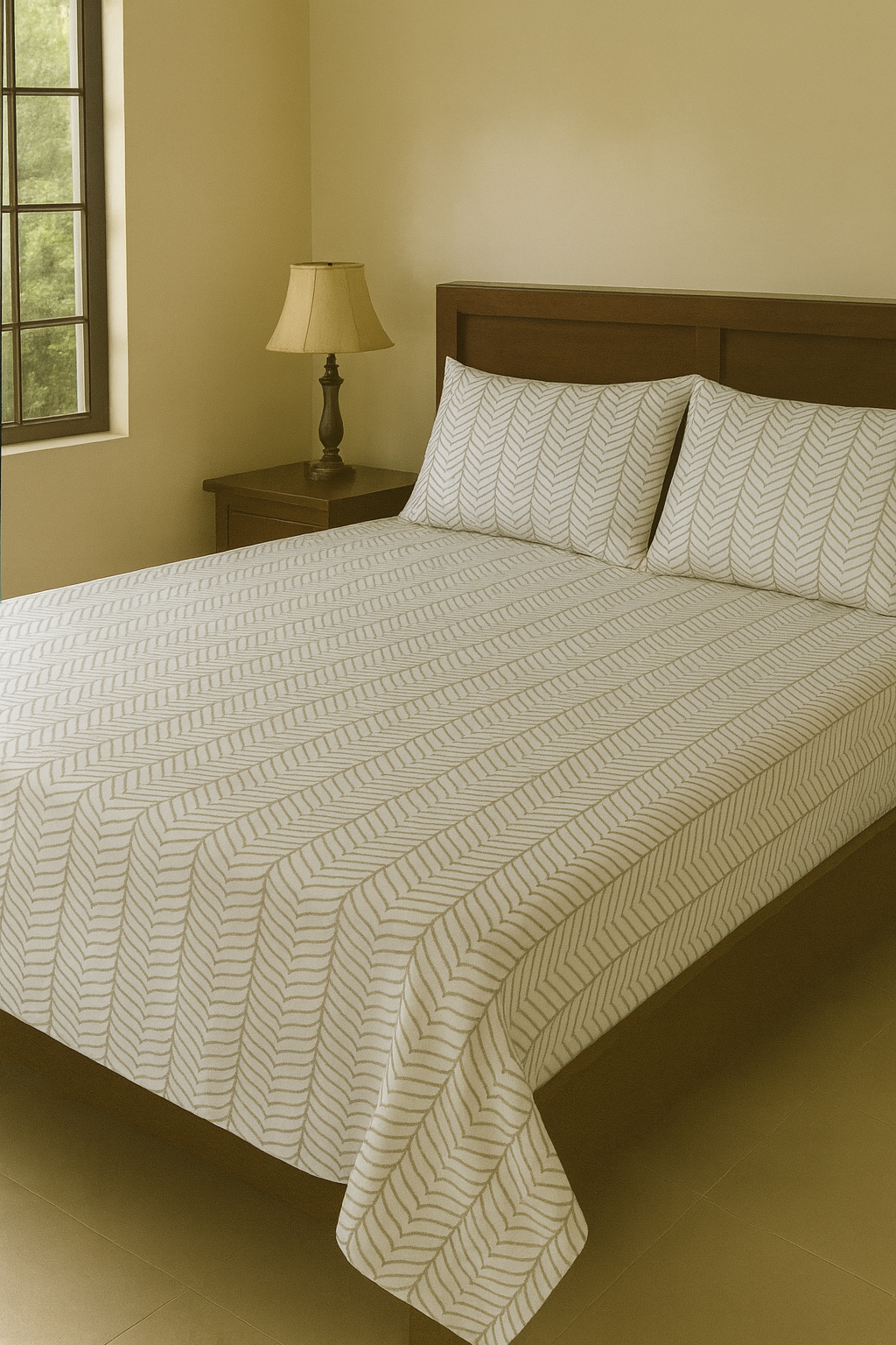 Ivory Leafline – 200 TC 100% Cotton Printed Double Bedsheet