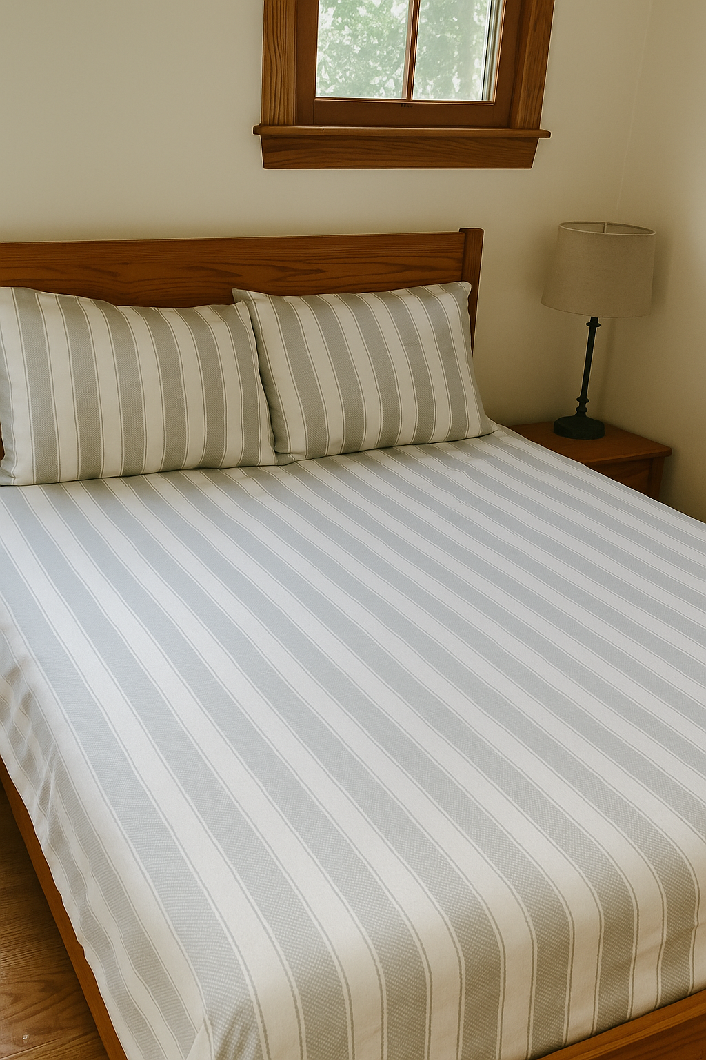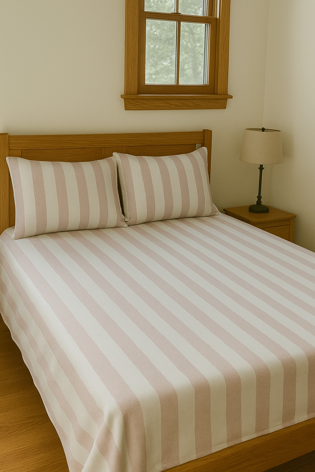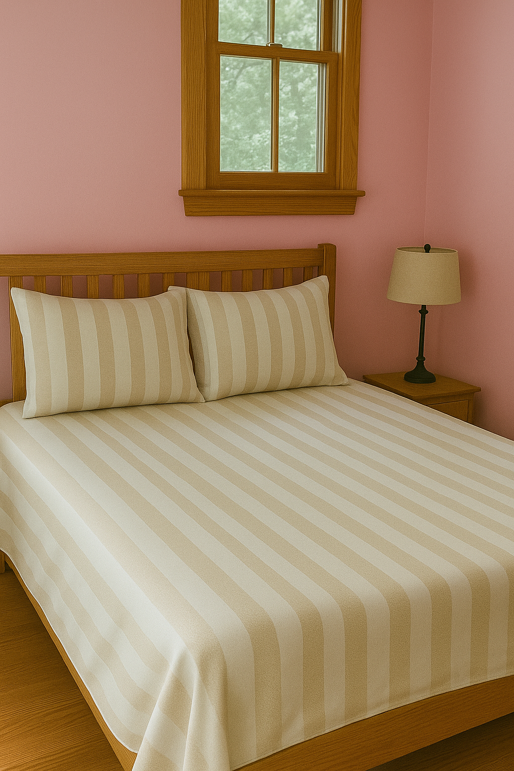 Ivory Stripe Elegance – 200 TC 100% Cotton Printed Double Bedsheet