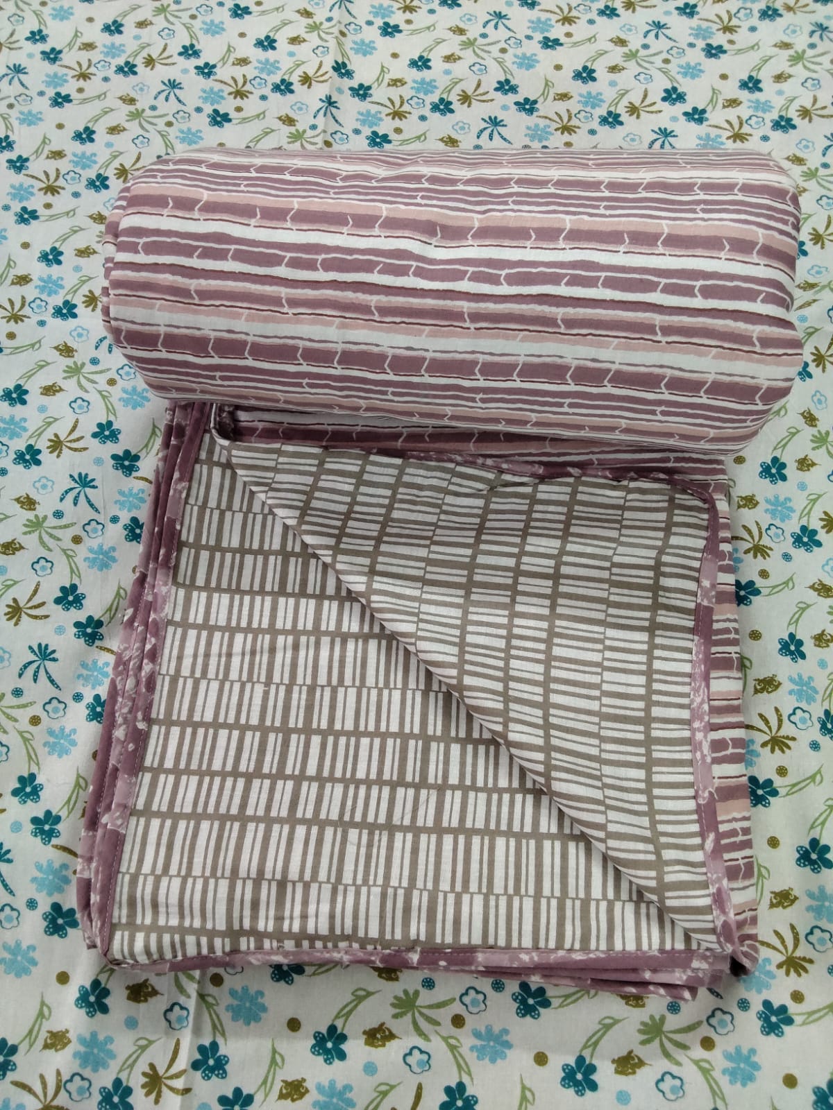 Mauve Stripe Soft Tripple Layer Pure Cambric Cotton Dohar Single Bed Size: 60 inch x 100 inches