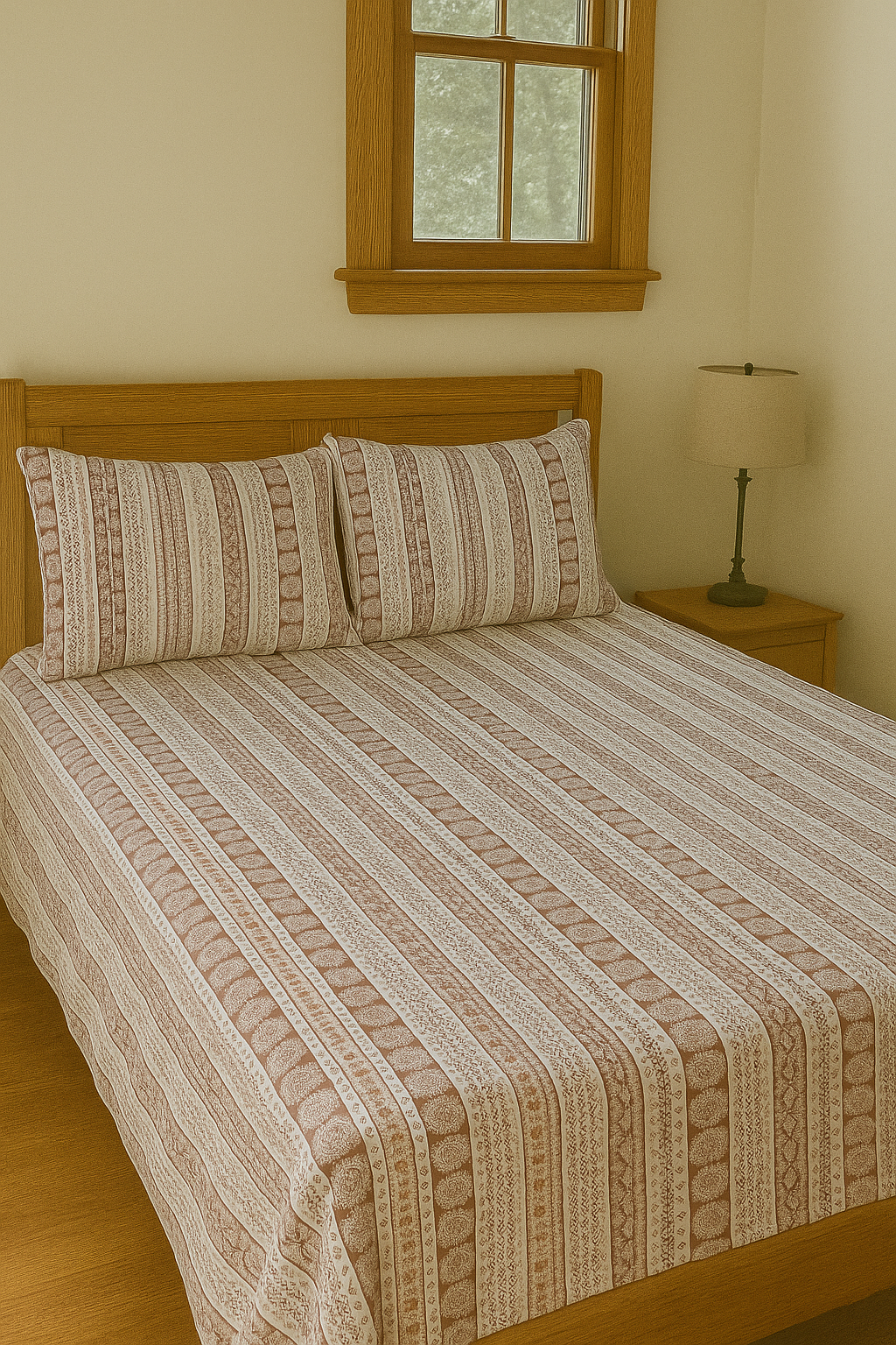 Sandstone Stripe 100% Printed Cotton Bedsheet Double Bed
