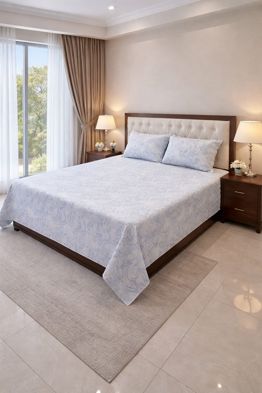 Soft Cloud Marble Bedsheet – 310 TC 100% Cotton Printed Double Bedsheet