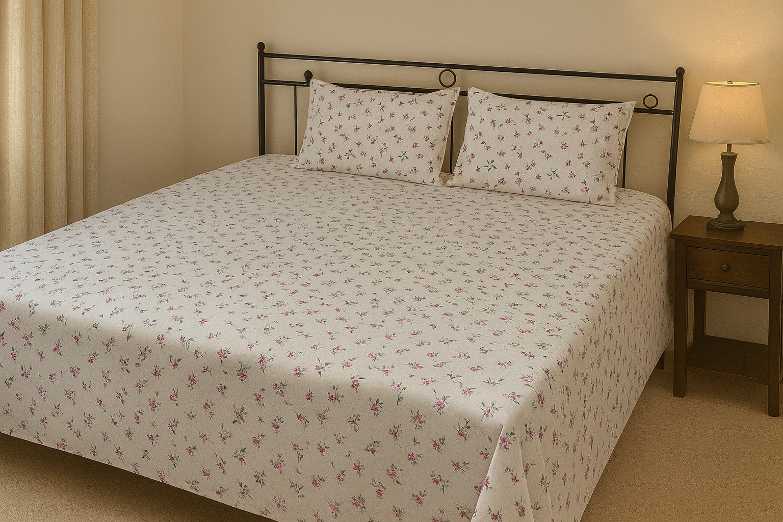 | Item | 200 TC, 100% Cotton, Printed Bed Sheet Double Bed with 2 Pillow Covers |