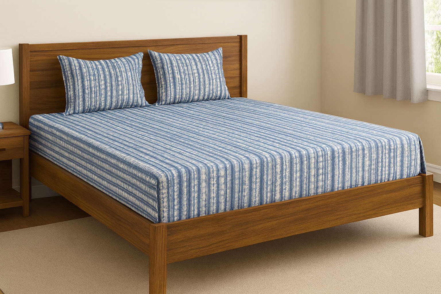 Strip blue 200 TC, 100% Printed cotton Bedsheet Double Bed